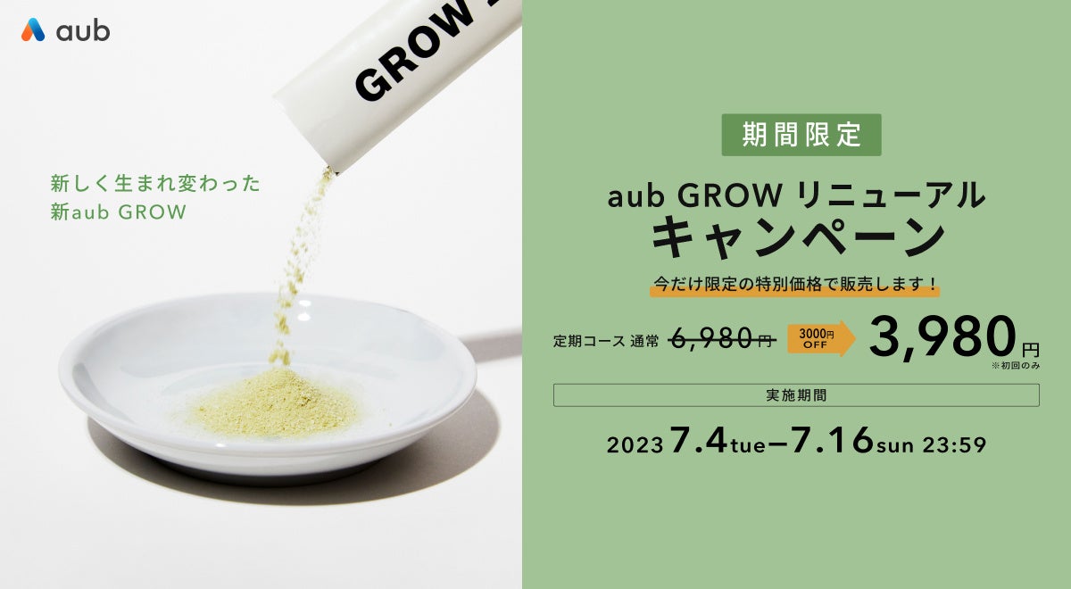 期間中は、aub GROW 定期コース(初回のみ)が3000円OFFとなります。