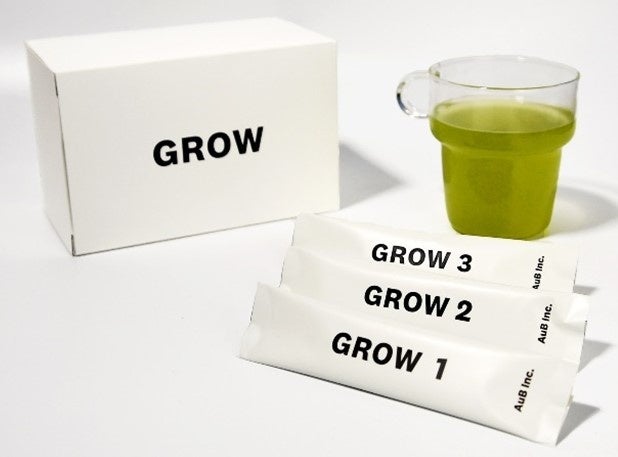 「aub GROW」は、腸内細菌のエサとなる水溶性食物繊維を種類豊富に補給できる、緑茶風味の粉末ドリンクタイプの商品です。