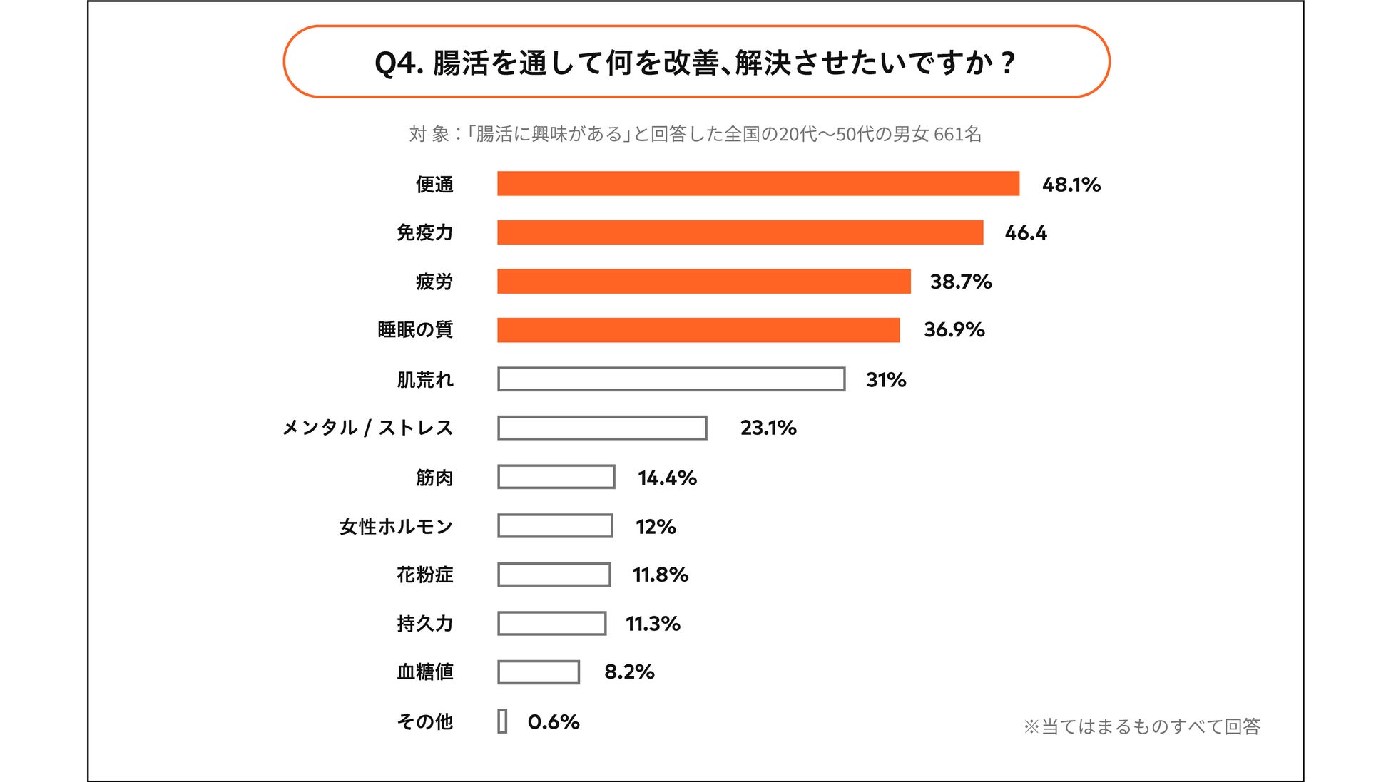 対 象 : 「腸活に興味がある」と回答した全国の20代~50代の男女 661名